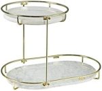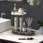 Luxury Design free standing shelf 2 Tier mackeup Organizer, Vanity Tray for Cosmetic, Perfume, Skincare, and other things storage. Introducing our 2 Layer Acrylic Cosmetic Storage Shelf, the stylish and functional solution for your makeup organization needs! Crafted from durable iron and high-quality acrylic.